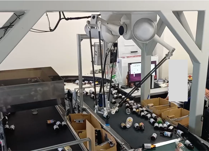 PET・缶(飲料・スプレー)・ビンの3種混在ラインにおいても、一台で高度な振り分けを可能にします。ロボットが担える作業範囲を広げることで、現場の配置転換を可能にします。